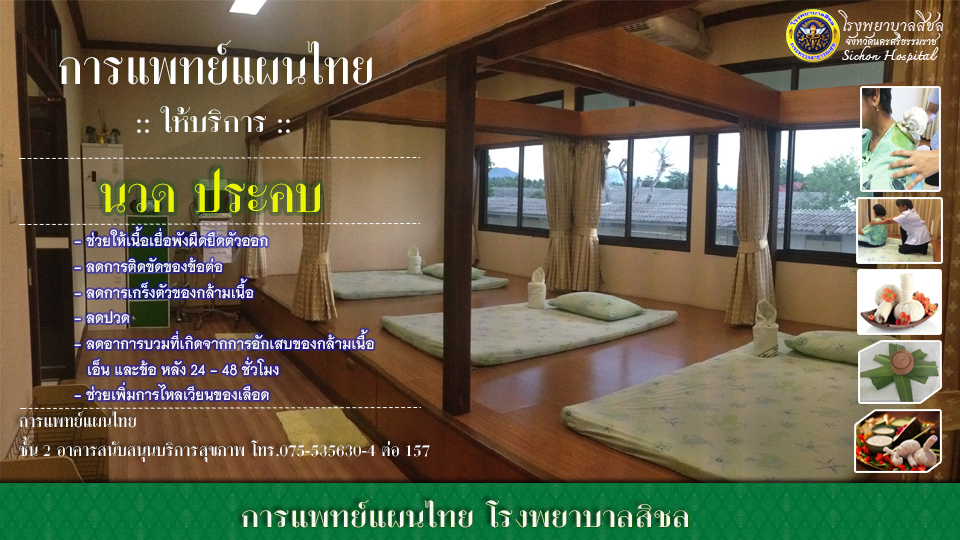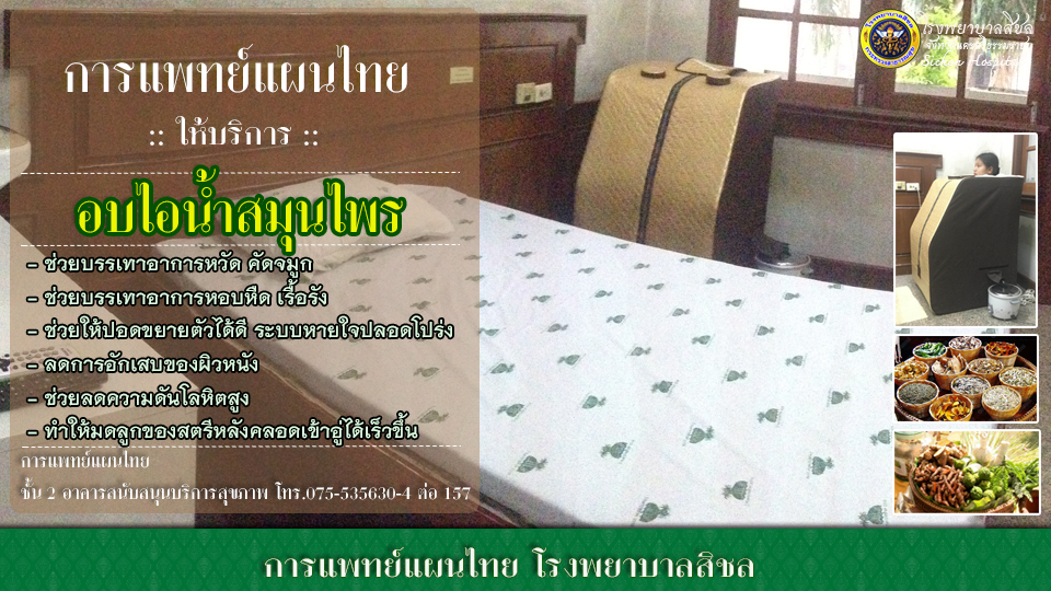 - --> นวด / ประคบ / อบไอน้ำสมุนไพร